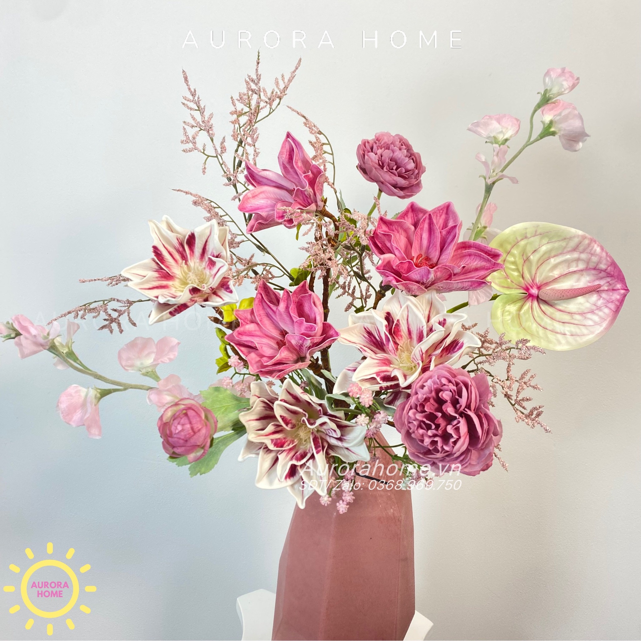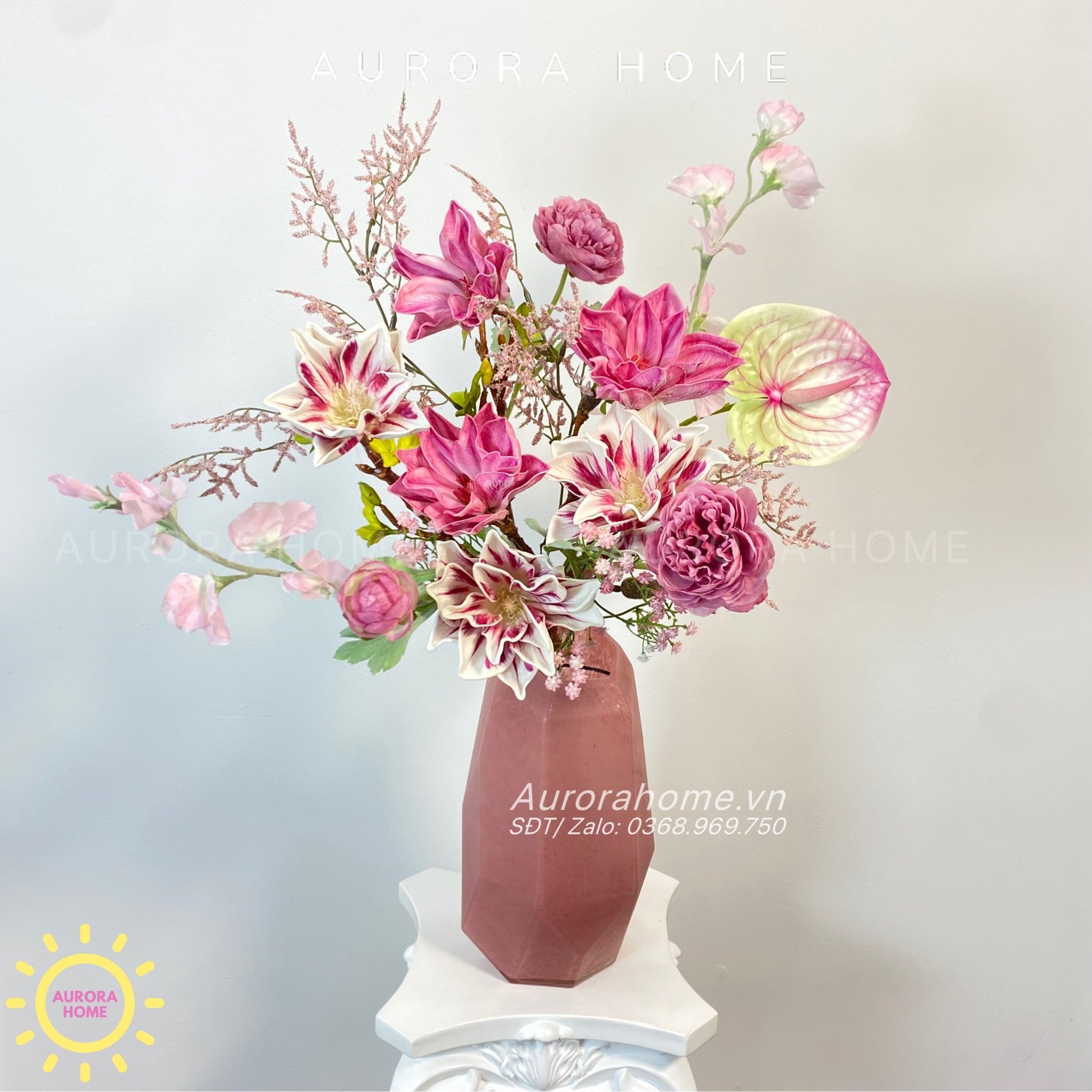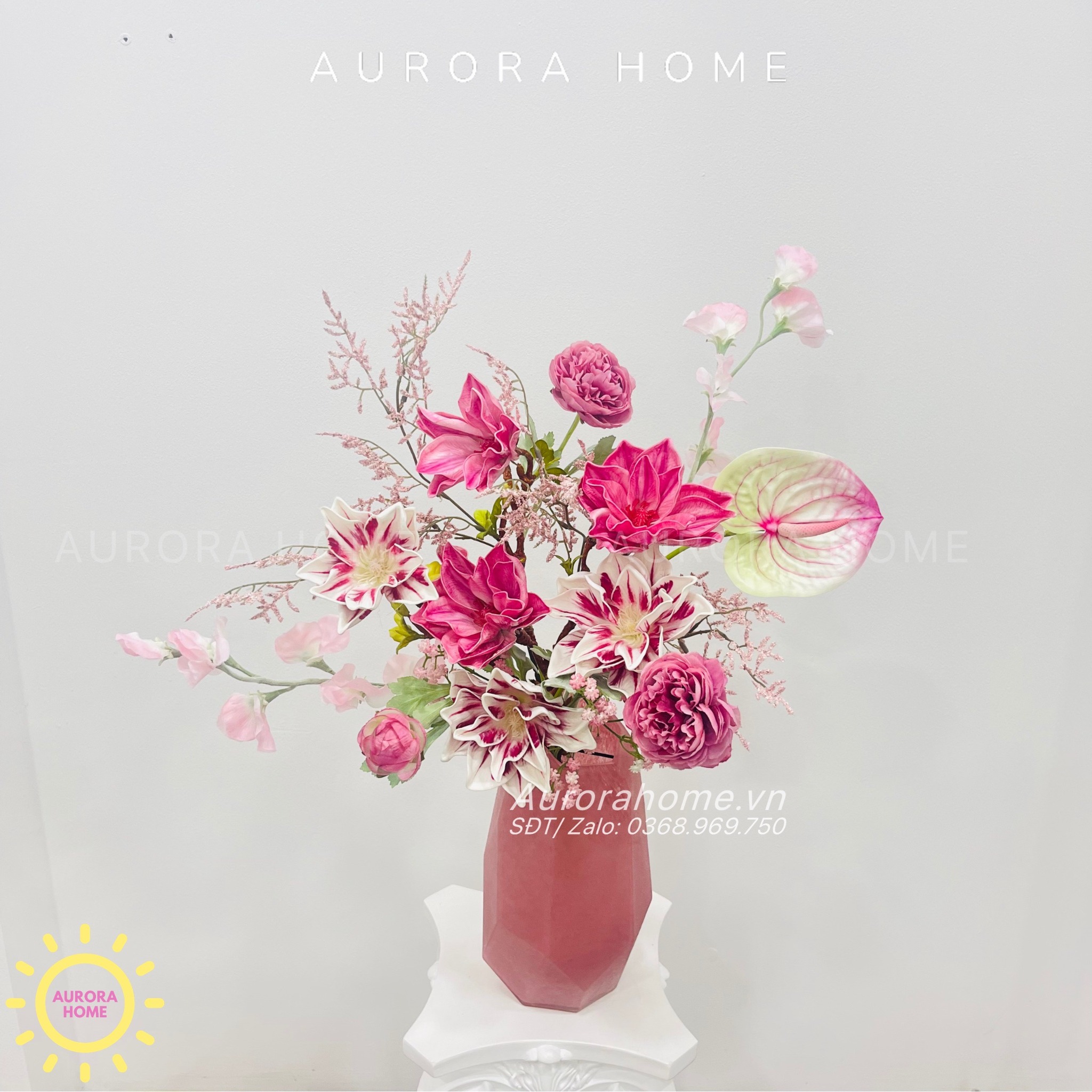 Aurora Home - Sản phẩm decor nội thất hiện đại chuyên cung cấp các sản phẩm bình hoa lụa, bình hoa vải, bình hoa giả cắm sẵn để bàn. Các sản phẩm tại Aurora Home đều được thiết kế riêng, cho ra những tông màu phù hợp với từng loại không gian khác nhau. Những chiếc bình hoa không chỉ đẹp từ vẻ đẹp tổng quan, mà yếu tố về chất liệu cũng là yếu tố hàng đầu được Aurora Home sử dụng trong việc thiết kế và cắm sẵn hoa.