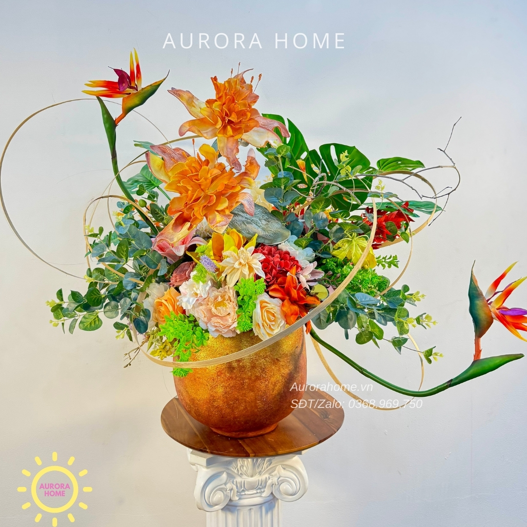 Aurora Home - Sản phẩm decor nội thất hiện đại chuyên cung cấp các sản phẩm bình hoa lụa, bình hoa vải, bình hoa giả cắm sẵn để bàn. Các sản phẩm tại Aurora Home đều được thiết kế riêng, cho ra những tông màu phù hợp với từng loại không gian khác nhau. Những chiếc bình hoa không chỉ đẹp từ vẻ đẹp tổng quan, mà yếu tố về chất liệu cũng là yếu tố hàng đầu được Aurora Home sử dụng trong việc thiết kế và cắm sẵn hoa.
