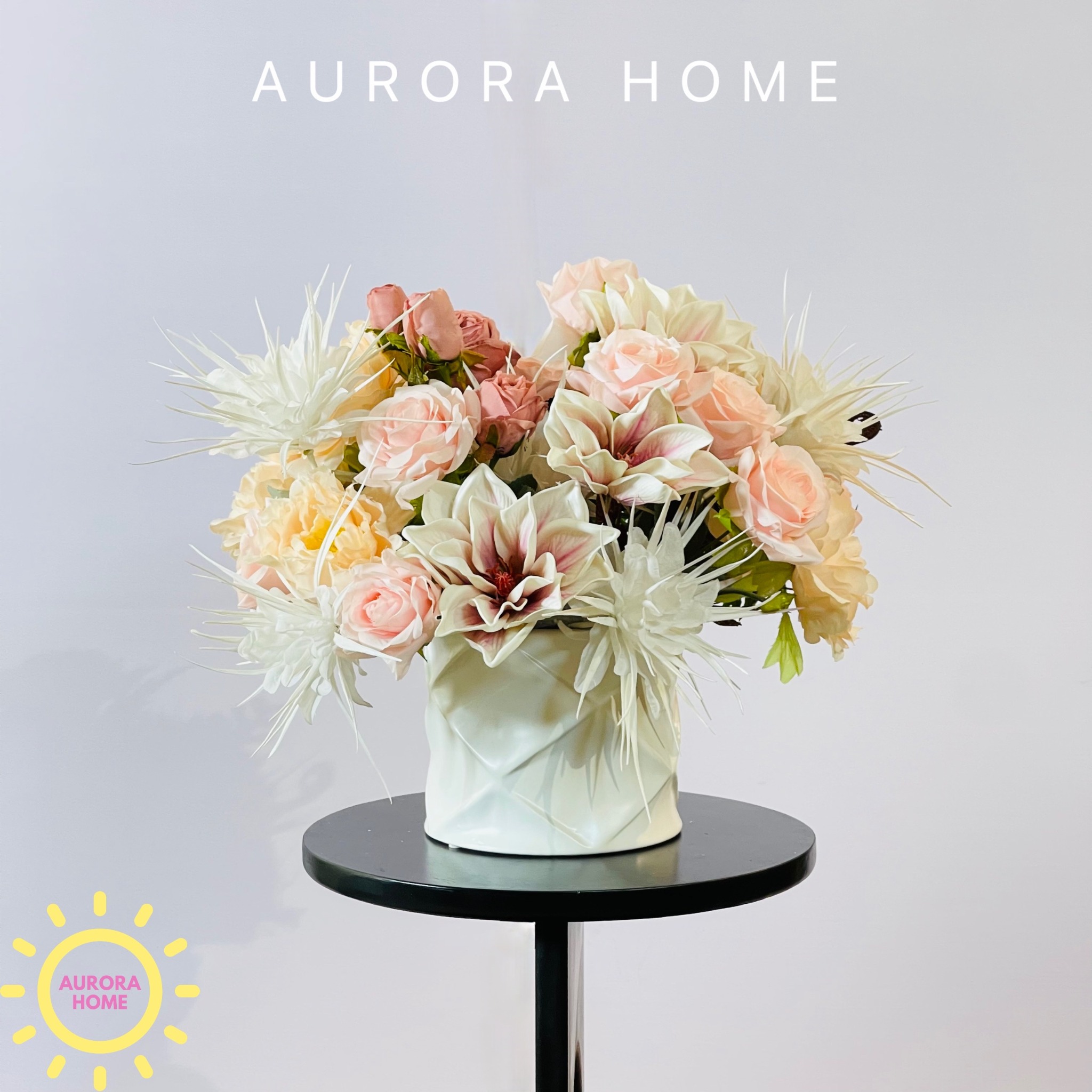 Aurora Home - Sản phẩm decor nội thất hiện đại chuyên cung cấp các sản phẩm bình hoa lụa, bình hoa vải, bình hoa giả cắm sẵn để bàn. Các sản phẩm tại Aurora Home đều được thiết kế riêng, cho ra những tông màu phù hợp với từng loại không gian khác nhau. Những chiếc bình hoa không chỉ đẹp từ vẻ đẹp tổng quan, mà yếu tố về chất liệu cũng là yếu tố hàng đầu được Aurora Home sử dụng trong việc thiết kế và cắm sẵn hoa.