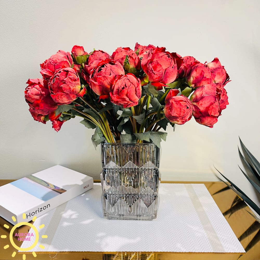 Bình hoa giả để bàn mẫu đơn Tendis sắc đỏ