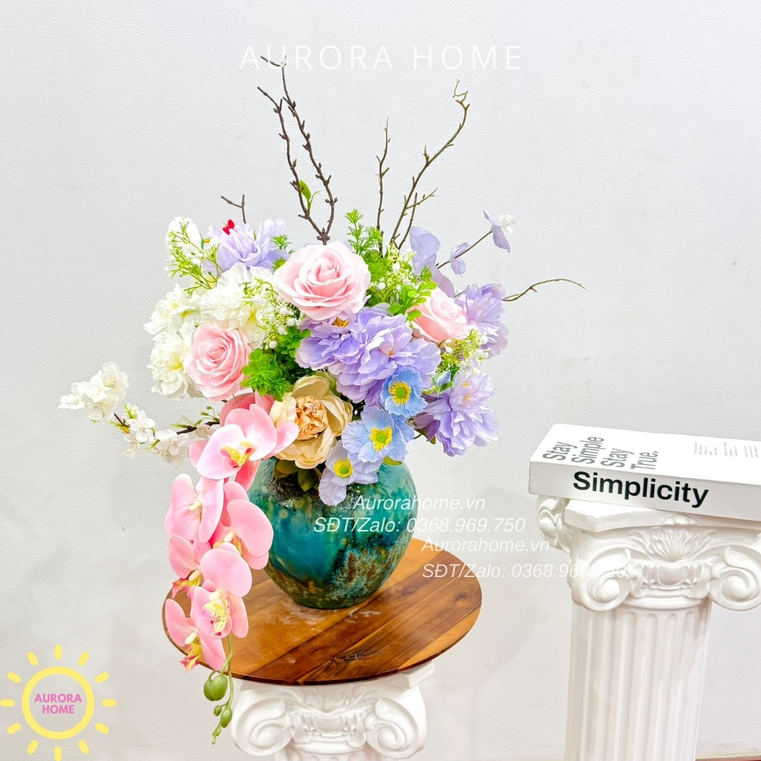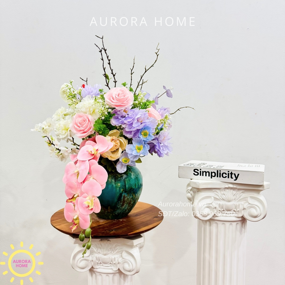 Aurora Home - Sản phẩm decor nội thất hiện đại chuyên cung cấp các sản phẩm bình hoa lụa, bình hoa vải, bình hoa giả cắm sẵn để bàn. Các sản phẩm tại Aurora Home đều được thiết kế riêng, cho ra những tông màu phù hợp với từng loại không gian khác nhau. Những chiếc bình hoa không chỉ đẹp từ vẻ đẹp tổng quan, mà yếu tố về chất liệu cũng là yếu tố hàng đầu được Aurora Home sử dụng trong việc thiết kế và cắm sẵn hoa.