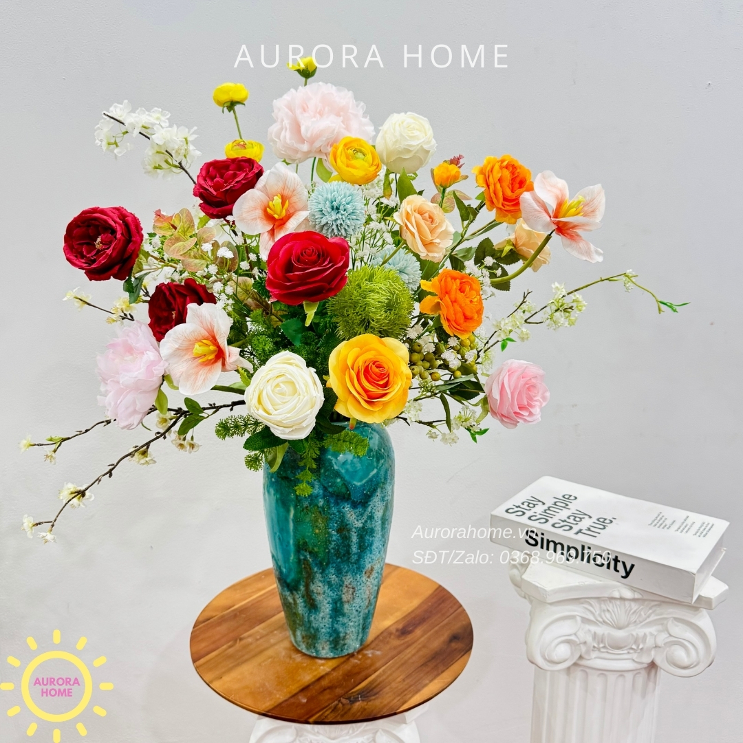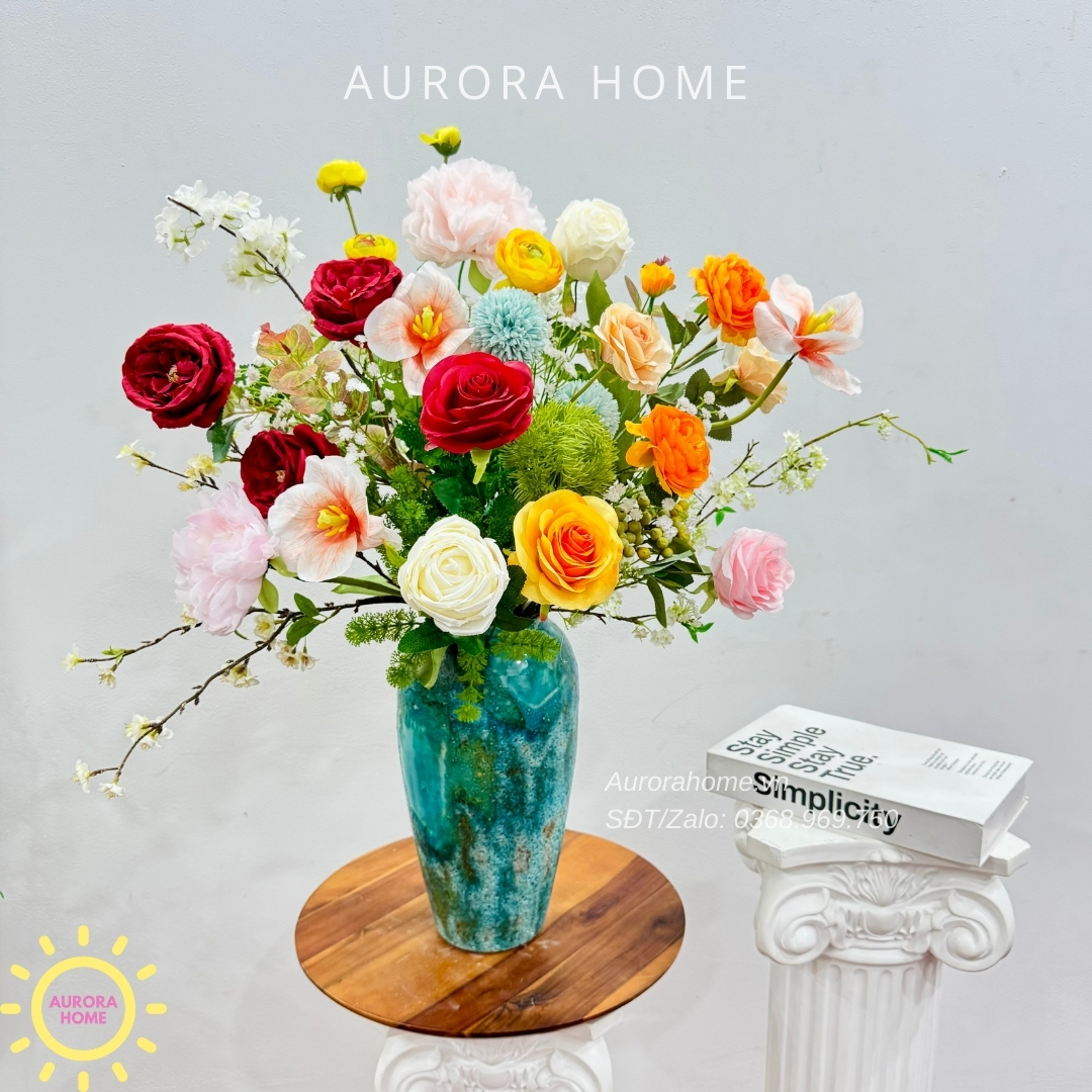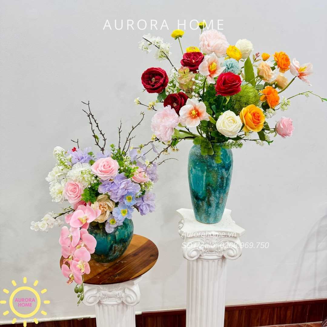 Aurora Home - Sản phẩm decor nội thất hiện đại chuyên cung cấp các sản phẩm bình hoa lụa, bình hoa vải, bình hoa giả cắm sẵn để bàn. Các sản phẩm tại Aurora Home đều được thiết kế riêng, cho ra những tông màu phù hợp với từng loại không gian khác nhau. Những chiếc bình hoa không chỉ đẹp từ vẻ đẹp tổng quan, mà yếu tố về chất liệu cũng là yếu tố hàng đầu được Aurora Home sử dụng trong việc thiết kế và cắm sẵn hoa.