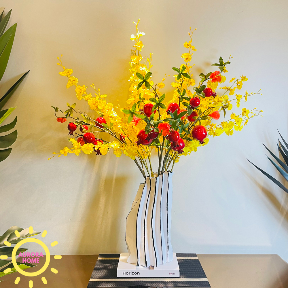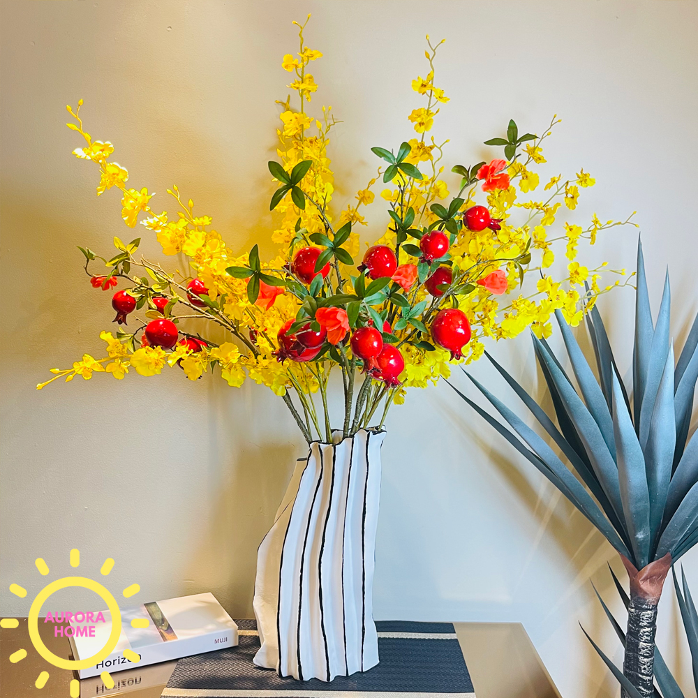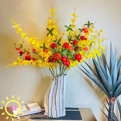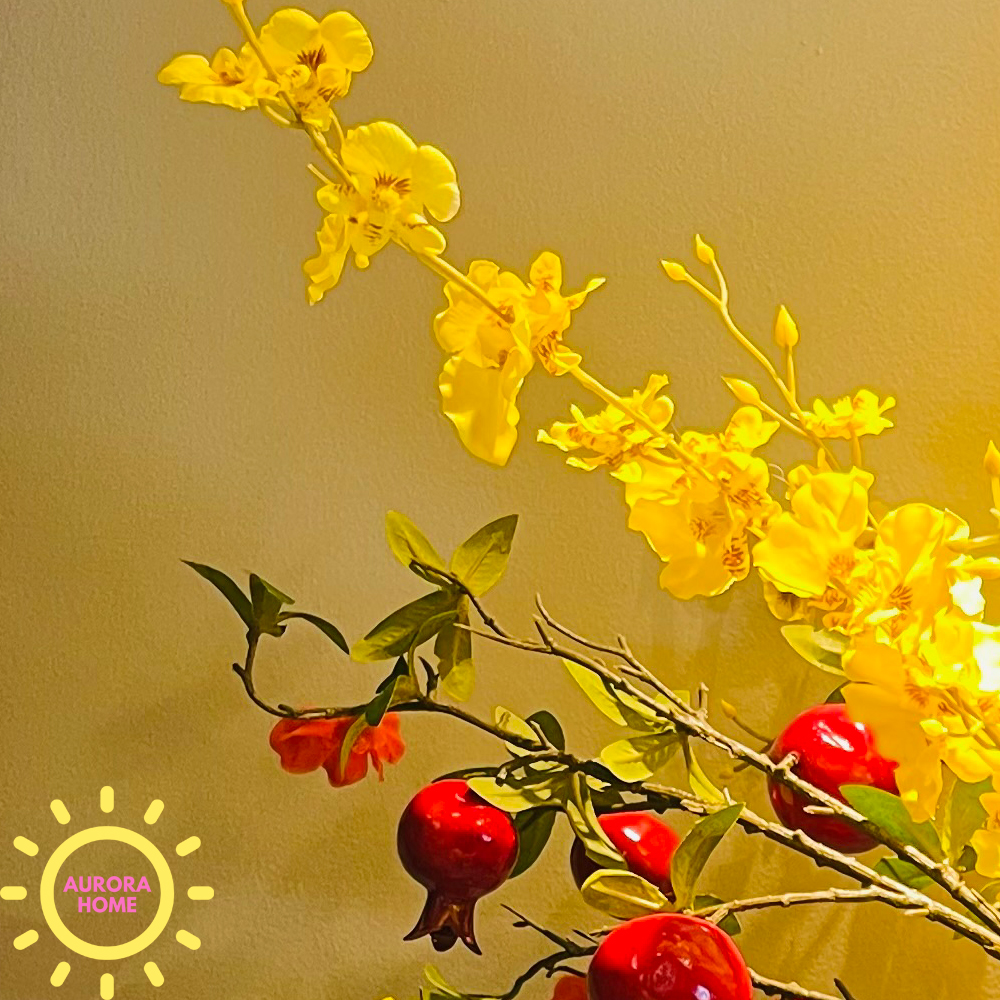 Bình hoa lan vũ nữ cắm sẵn cao cấp phối quả lựu