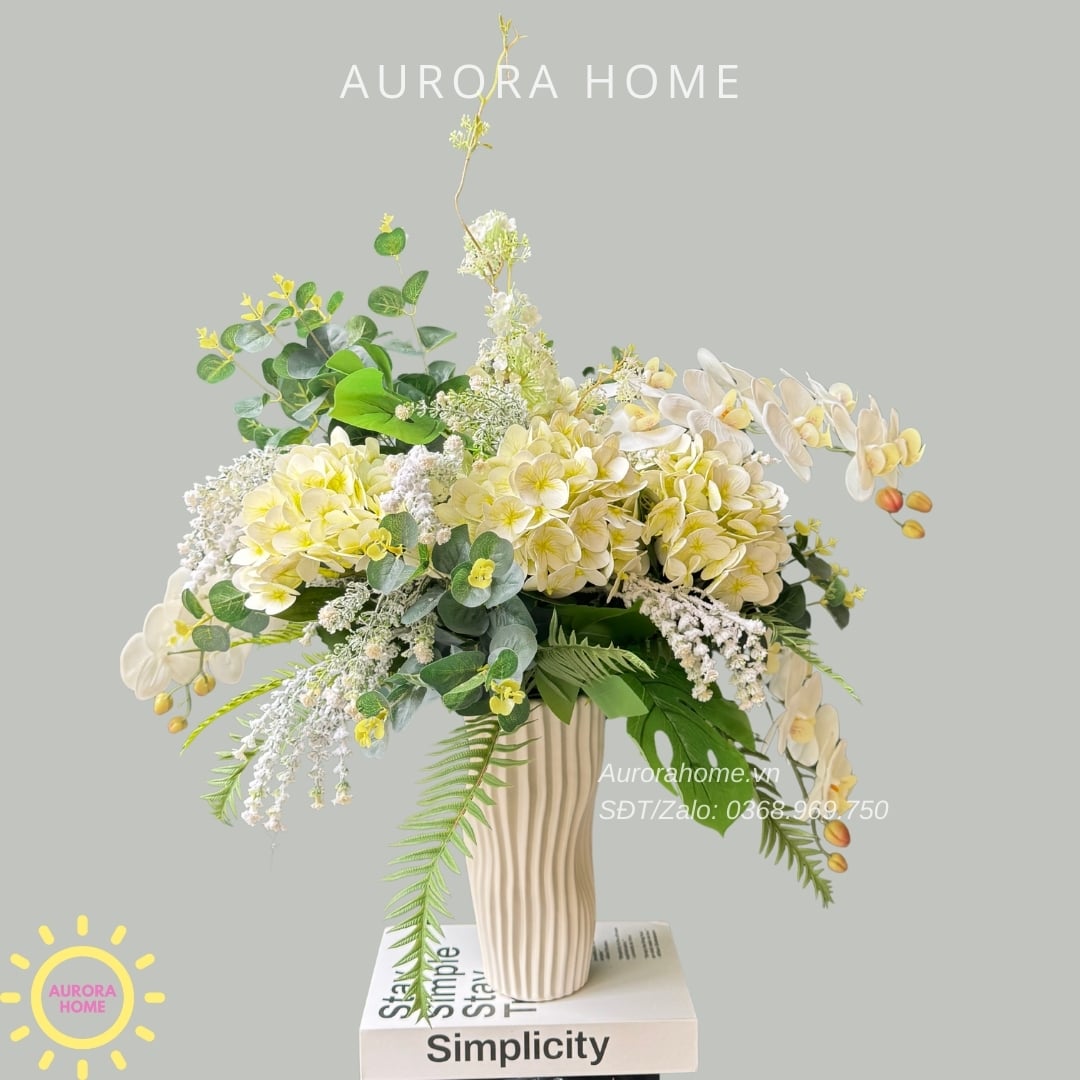 Aurora Home - Sản phẩm decor nội thất hiện đại chuyên cung cấp các sản phẩm bình hoa lụa, bình hoa vải, bình hoa giả cắm sẵn để bàn. Các sản phẩm tại Aurora Home đều được thiết kế riêng, cho ra những tông màu phù hợp với từng loại không gian khác nhau. Những chiếc bình hoa không chỉ đẹp từ vẻ đẹp tổng quan, mà yếu tố về chất liệu cũng là yếu tố hàng đầu được Aurora Home sử dụng trong việc thiết kế và cắm sẵn hoa.