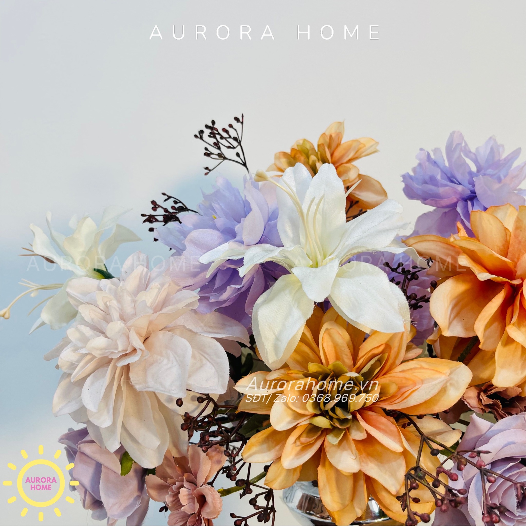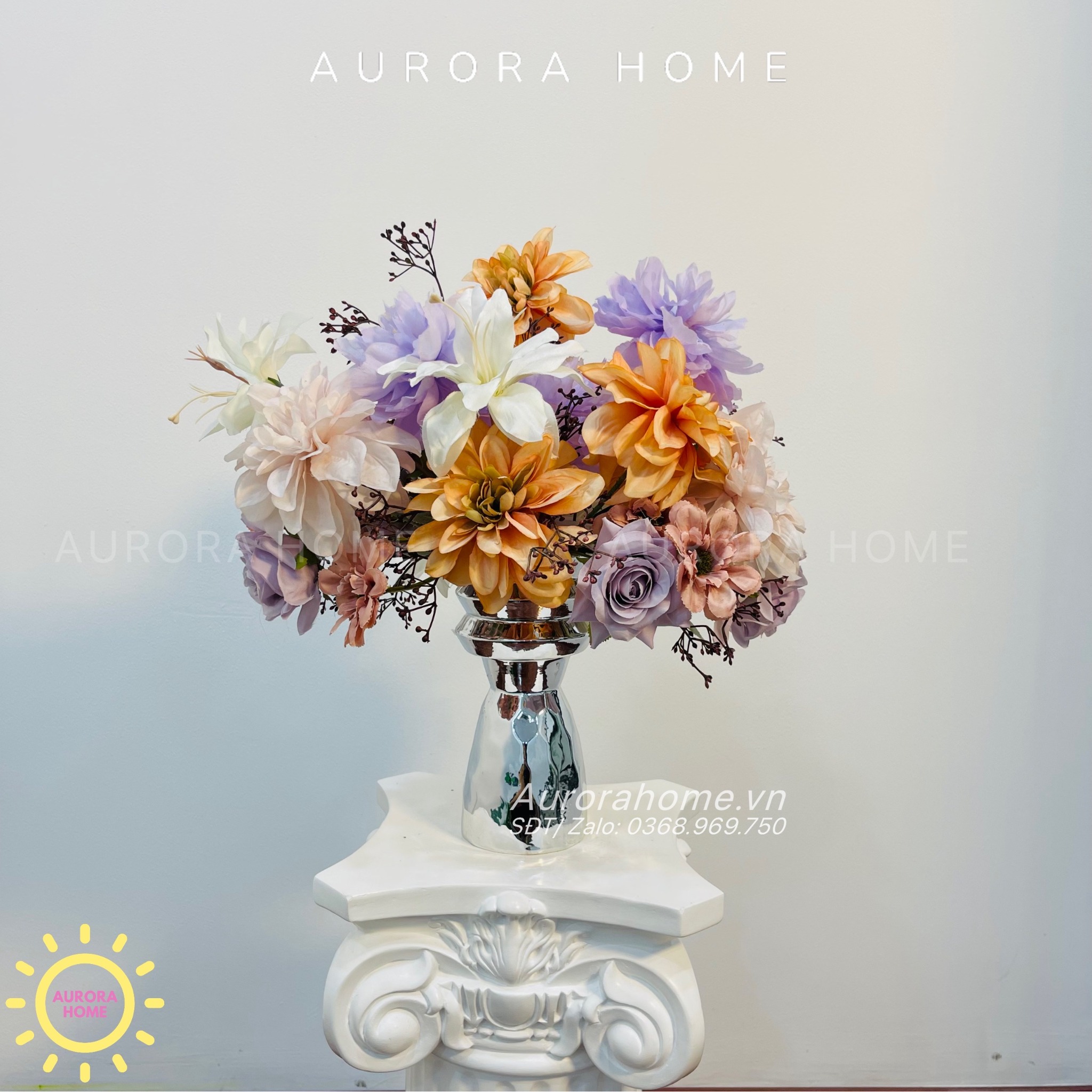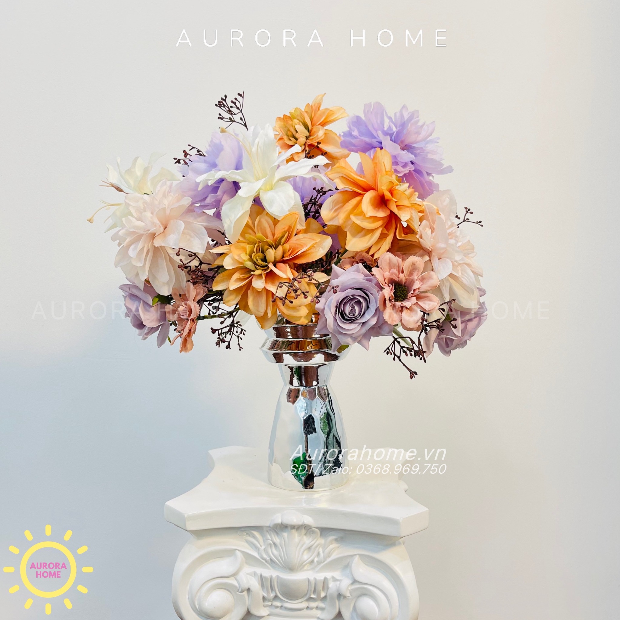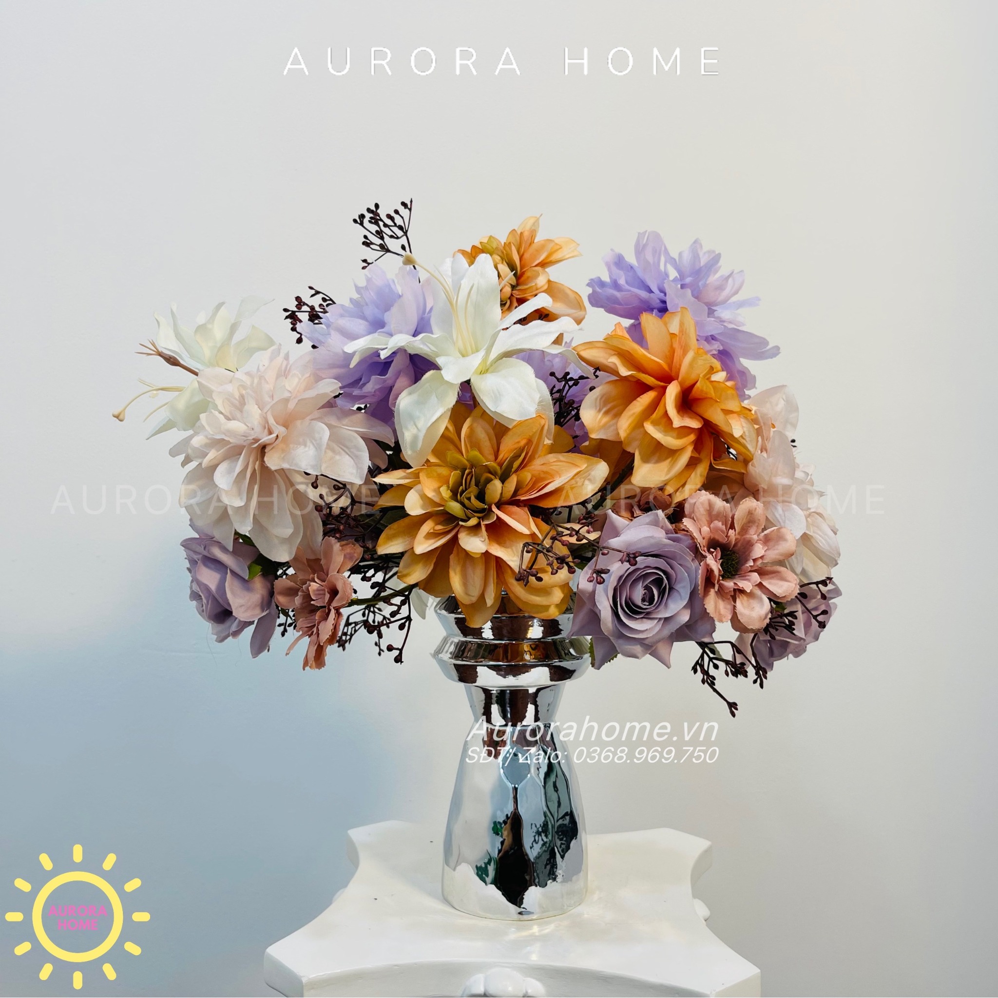 Aurora Home - Sản phẩm decor nội thất hiện đại chuyên cung cấp các sản phẩm bình hoa lụa, bình hoa vải, bình hoa giả cắm sẵn để bàn. Các sản phẩm tại Aurora Home đều được thiết kế riêng, cho ra những tông màu phù hợp với từng loại không gian khác nhau. Những chiếc bình hoa không chỉ đẹp từ vẻ đẹp tổng quan, mà yếu tố về chất liệu cũng là yếu tố hàng đầu được Aurora Home sử dụng trong việc thiết kế và cắm sẵn hoa.