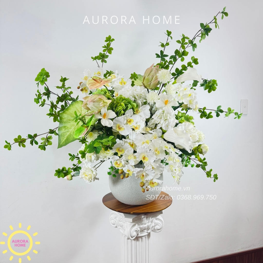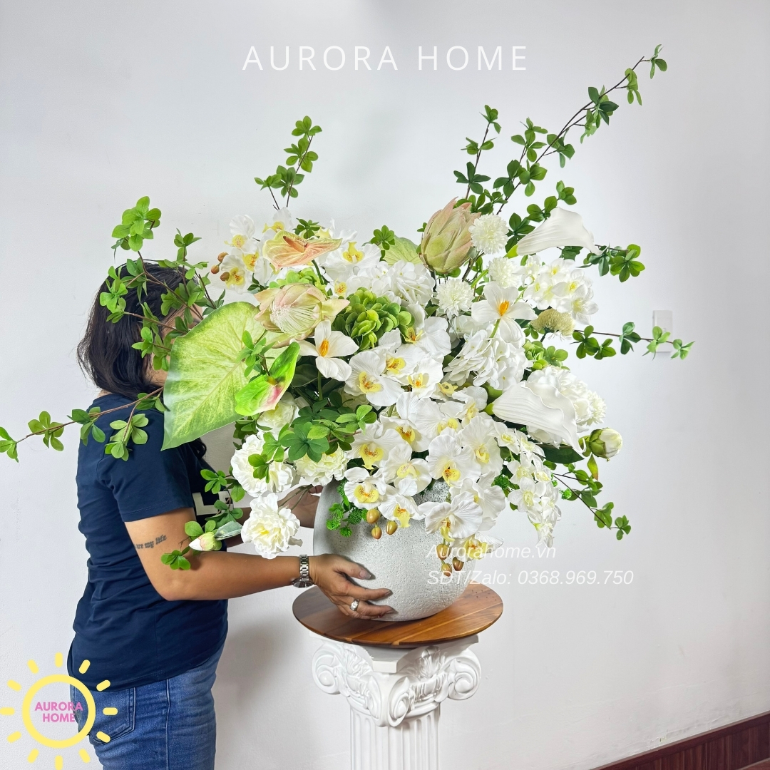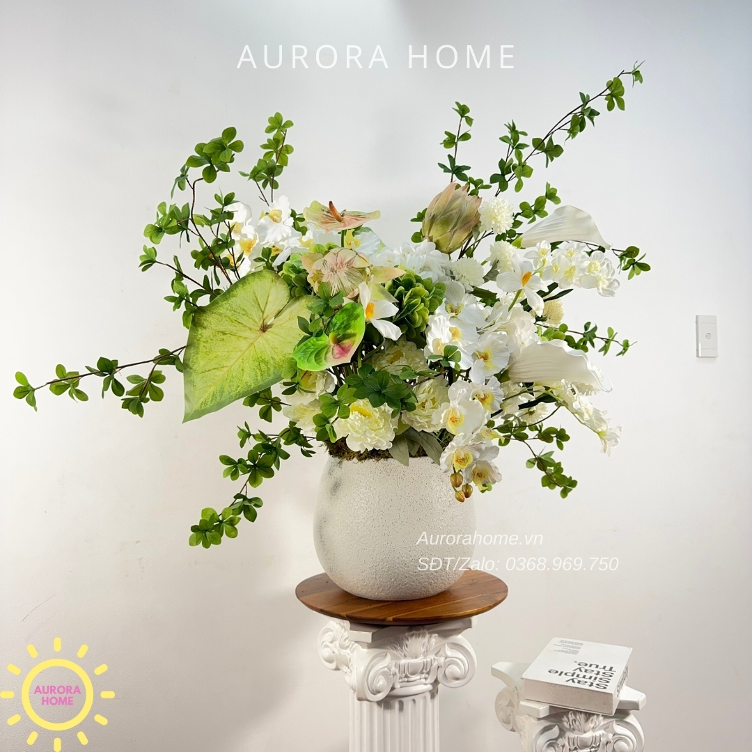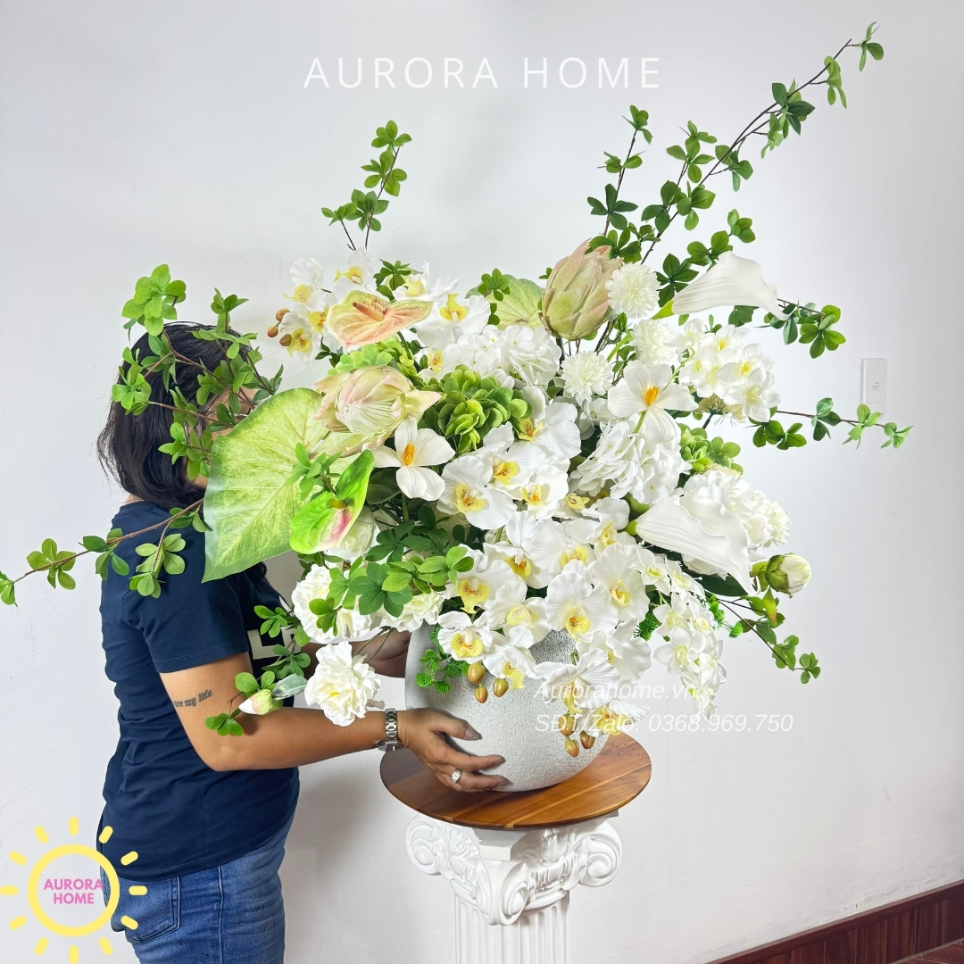 Aurora Home - Sản phẩm trang trí nội thất hiện đại chuyên cung cấp các sản phẩm bình hoa lụa, bình hoa vải, bình hoa giả cắm sẵn để bàn. Các sản phẩm tại Aurora Home đều được thiết kế riêng, cho ra những tông màu phù hợp với từng loại không gian khác nhau. Những bình bình bình hoa không chỉ đẹp từ vẻ đẹp tổng quan, mà yếu tố về chất liệu cũng là yếu tố hàng đầu được Aurora Home sử dụng trong công việc thiết kế và cắm sẵn hoa.