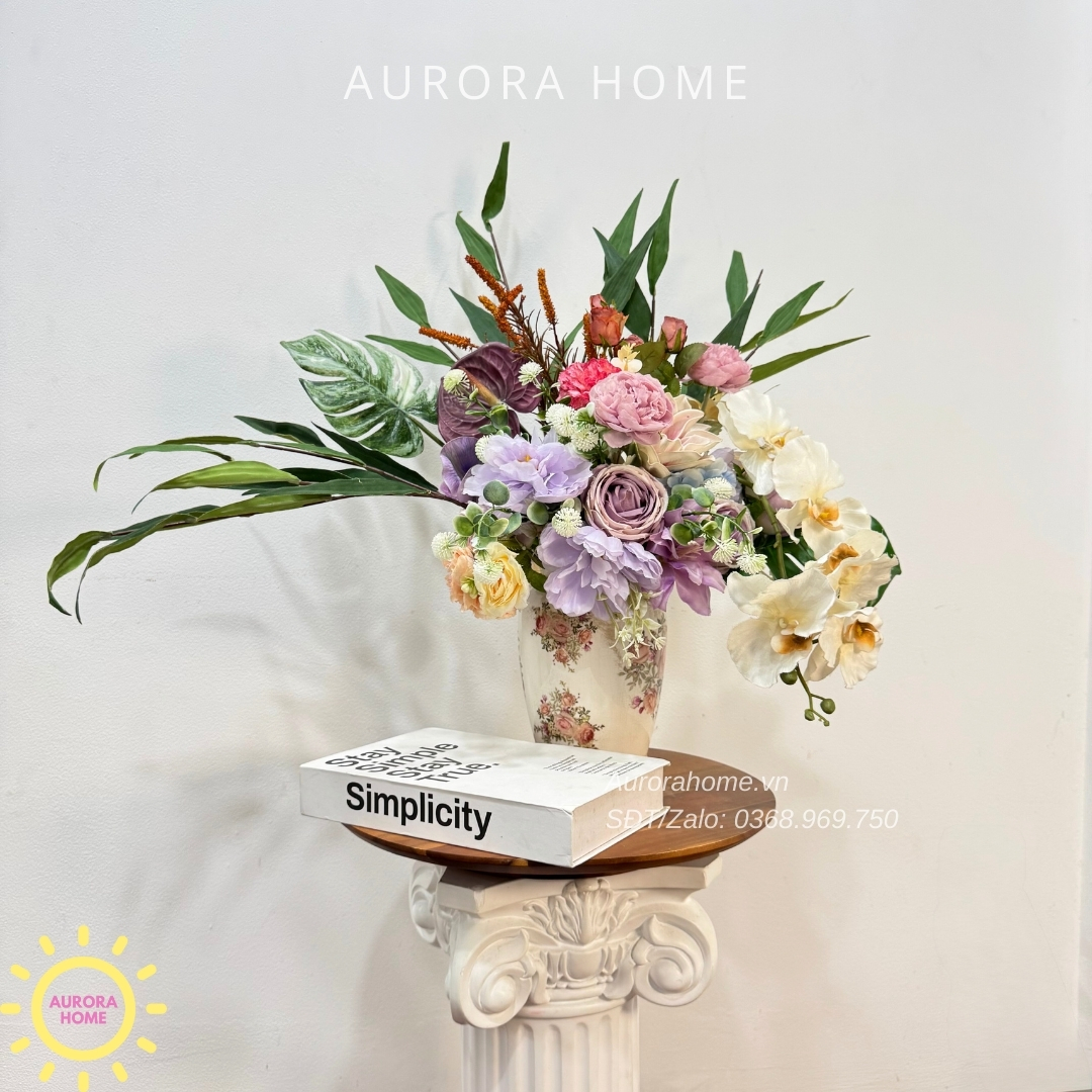 Aurora Home - Sản phẩm decor nội thất hiện đại chuyên cung cấp các sản phẩm bình hoa lụa, bình hoa vải, bình hoa giả cắm sẵn để bàn. Các sản phẩm tại Aurora Home đều được thiết kế riêng, cho ra những tông màu phù hợp với từng loại không gian khác nhau. Những chiếc bình hoa không chỉ đẹp từ vẻ đẹp tổng quan, mà yếu tố về chất liệu cũng là yếu tố hàng đầu được Aurora Home sử dụng trong việc thiết kế và cắm sẵn hoa.