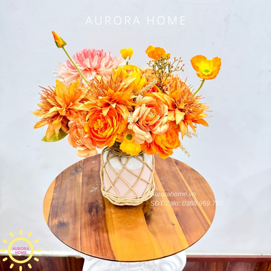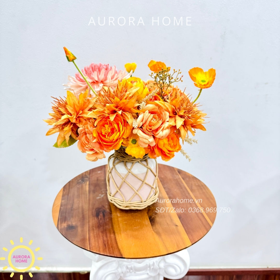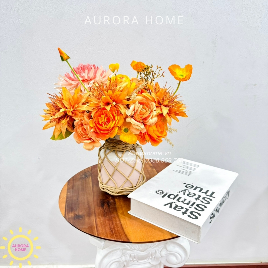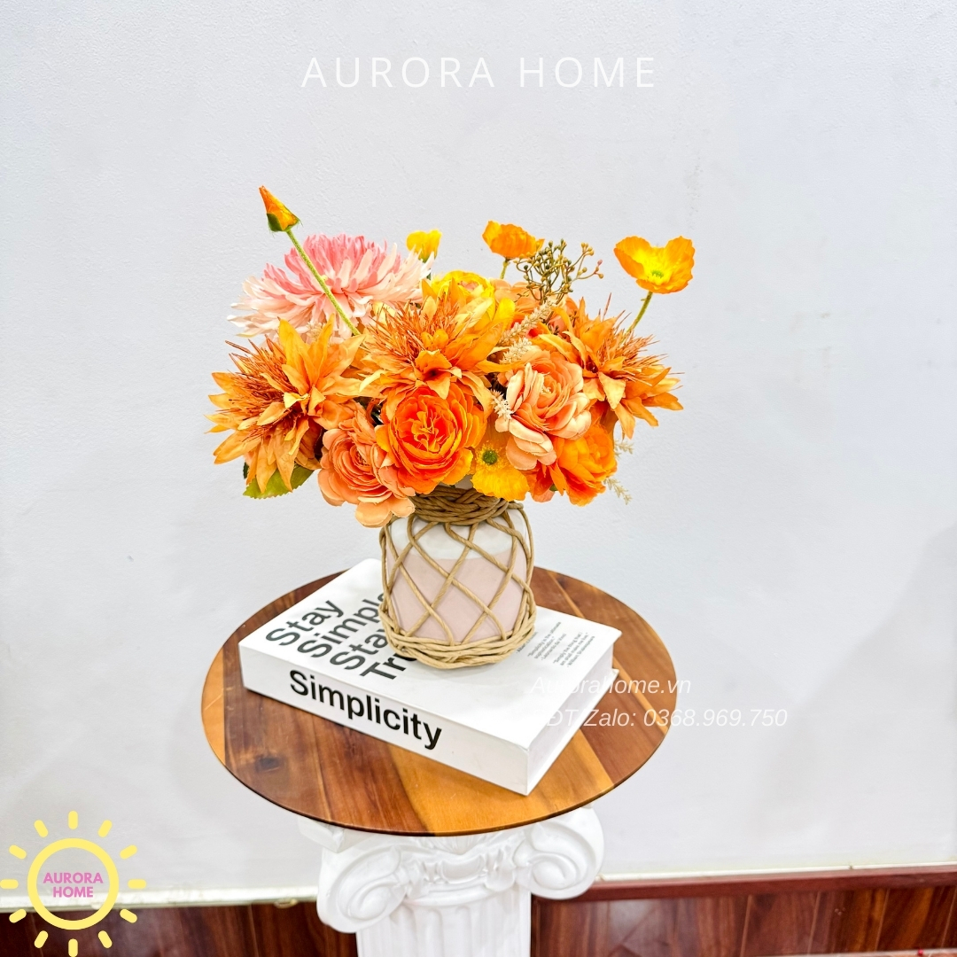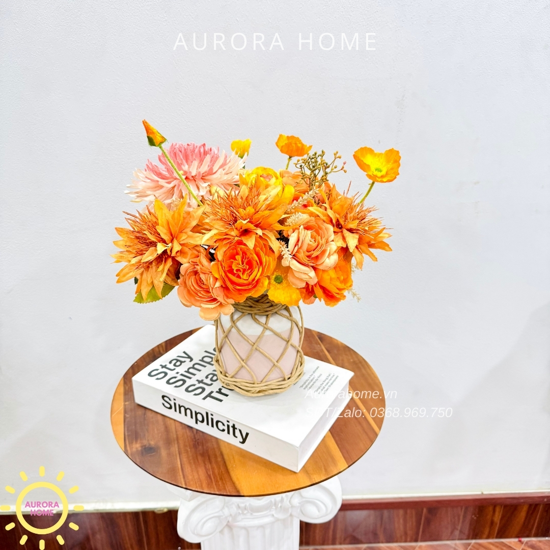 Aurora Home - Sản phẩm decor nội thất hiện đại chuyên cung cấp các sản phẩm bình hoa lụa, bình hoa vải, bình hoa giả cắm sẵn để bàn. Các sản phẩm tại Aurora Home đều được thiết kế riêng, cho ra những tông màu phù hợp với từng loại không gian khác nhau. Những chiếc bình hoa không chỉ đẹp từ vẻ đẹp tổng quan, mà yếu tố về chất liệu cũng là yếu tố hàng đầu được Aurora Home sử dụng trong việc thiết kế và cắm sẵn hoa.