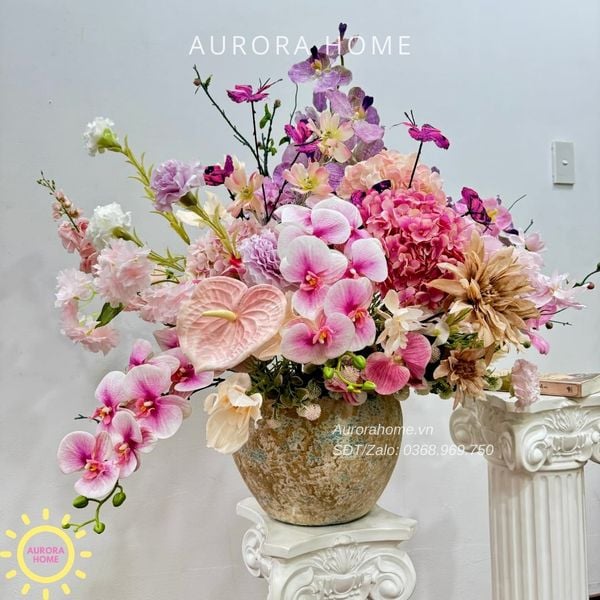 Aurora Home - Sản phẩm trang trí nội thất hiện đại chuyên cung cấp các sản phẩm bình hoa lụa, bình hoa vải, bình hoa giả cắm sẵn để bàn. Các sản phẩm tại Aurora Home đều được thiết kế riêng, cho ra những tông màu phù hợp với từng loại không gian khác nhau. Những bình bình bình hoa không chỉ đẹp từ vẻ đẹp tổng quan, mà yếu tố về chất liệu cũng là yếu tố hàng đầu được Aurora Home sử dụng trong công việc thiết kế và cắm sẵn hoa.