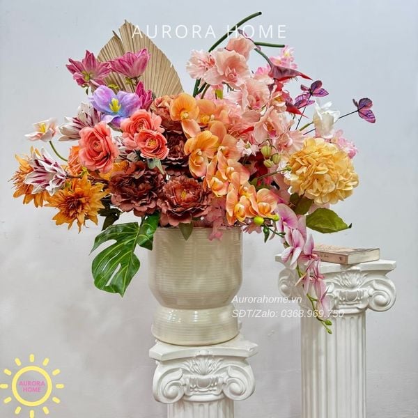 Aurora Home - Sản phẩm trang trí nội thất hiện đại chuyên cung cấp các sản phẩm bình hoa lụa, bình hoa vải, bình hoa giả cắm sẵn để bàn. Các sản phẩm tại Aurora Home đều được thiết kế riêng, cho ra những tông màu phù hợp với từng loại không gian khác nhau. Những bình bình bình hoa không chỉ đẹp từ vẻ đẹp tổng quan, mà yếu tố về chất liệu cũng là yếu tố hàng đầu được Aurora Home sử dụng trong công việc thiết kế và cắm sẵn hoa.
