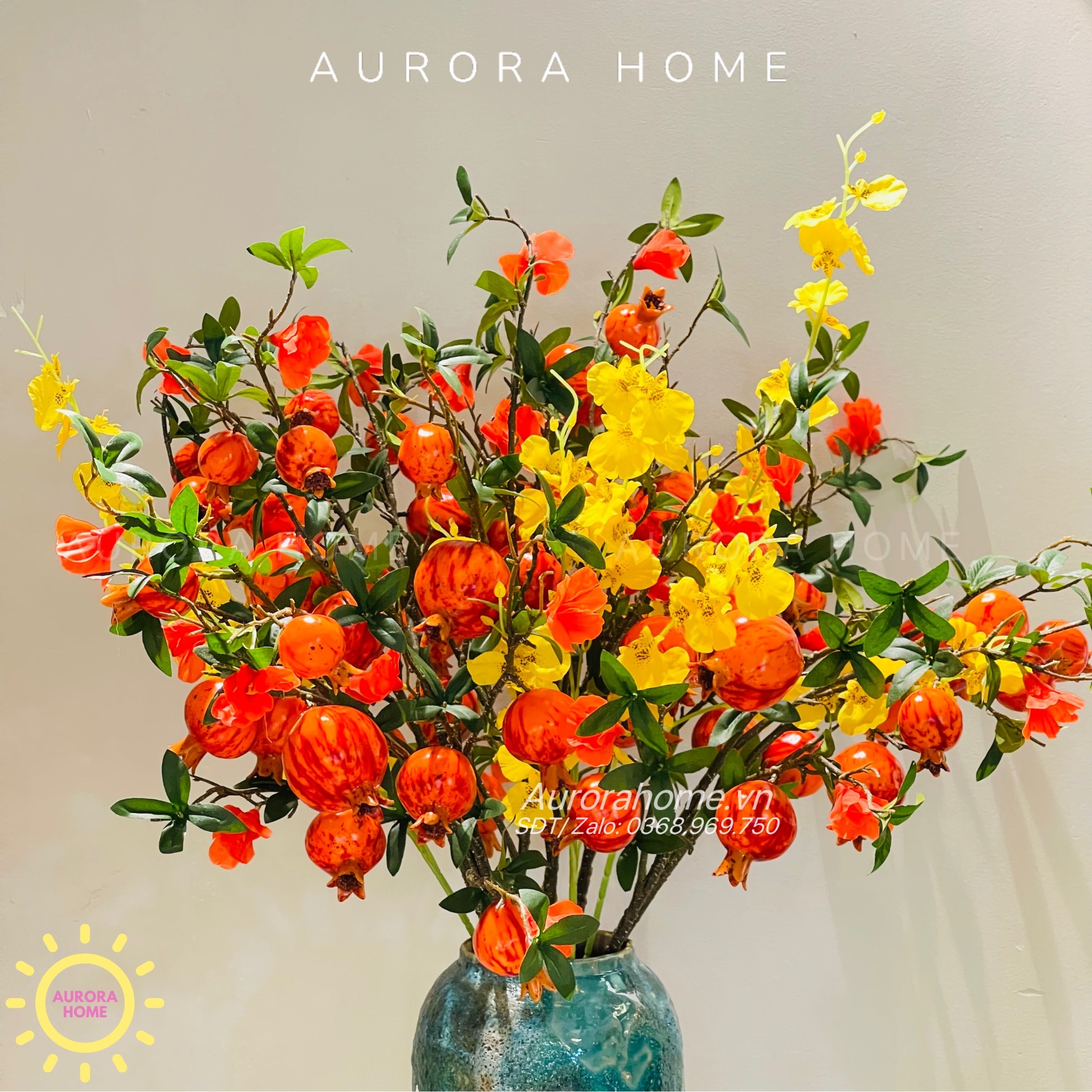 Bình hoa lựu phối lan vũ nữ cao cấp Phong Hương