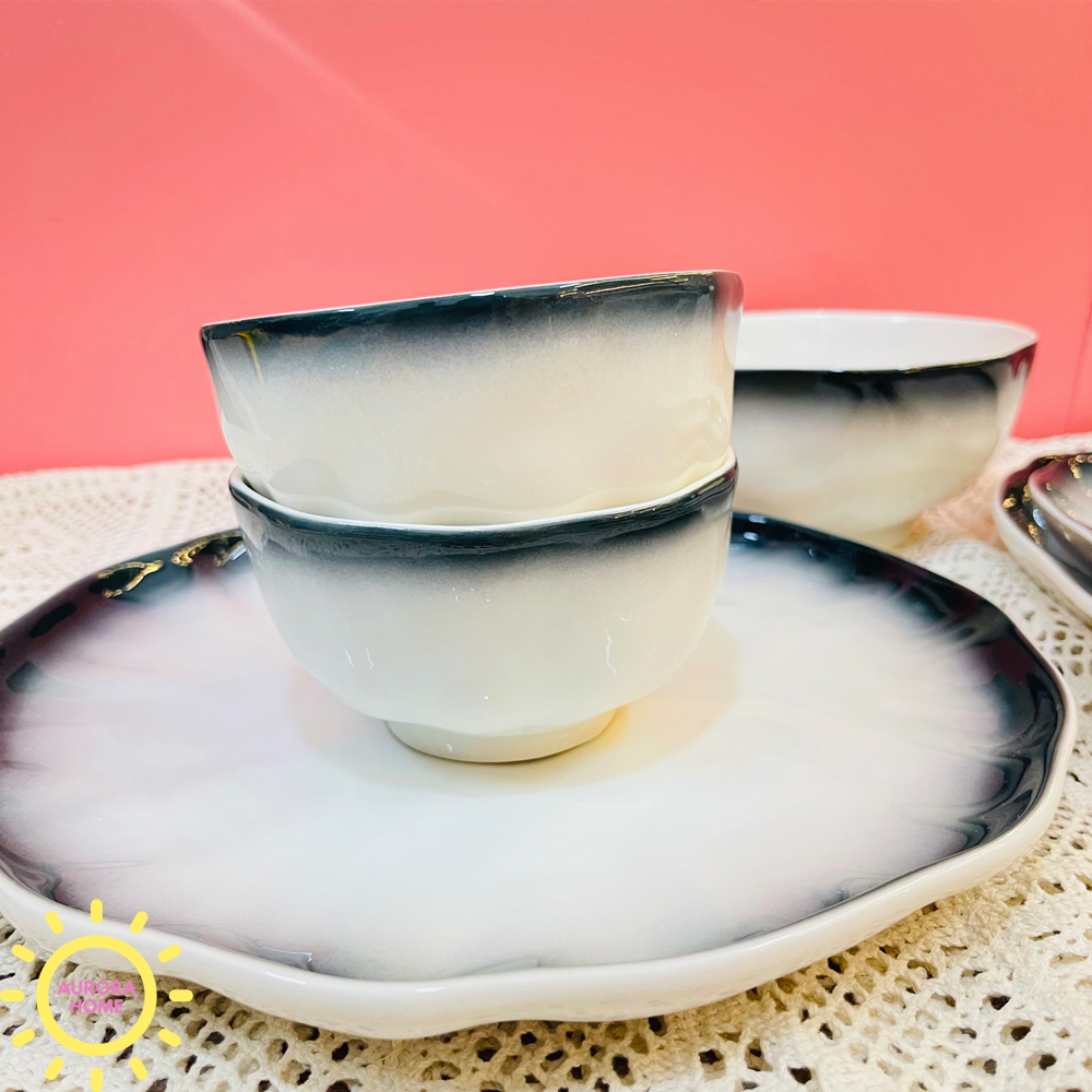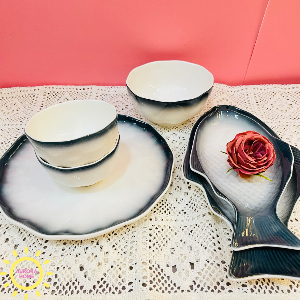 - Bộ sản phẩm gồm 02 chén ăn cơm, 01 tô nhỏ , 01 dĩa tròn, 01 dĩa cá lớn, 01 dĩa cá nhỏ