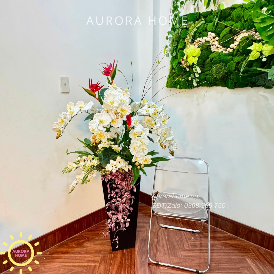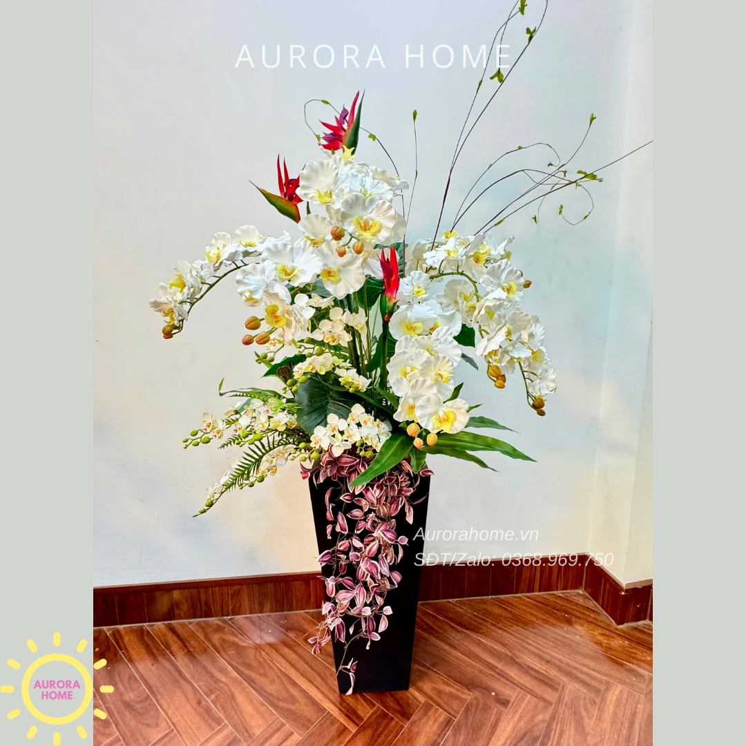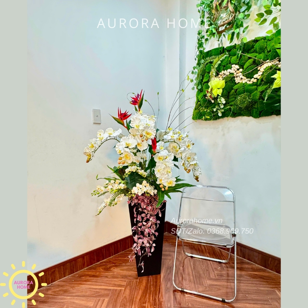 Aurora Home - Sản phẩm trang trí nội thất hiện đại chuyên cung cấp các sản phẩm bình hoa lụa, bình hoa vải, bình hoa giả cắm sẵn để bàn. Các sản phẩm tại Aurora Home đều được thiết kế riêng, cho ra những tông màu phù hợp với từng loại không gian khác nhau. Những bình bình bình hoa không chỉ đẹp từ vẻ đẹp tổng quan, mà yếu tố về chất liệu cũng là yếu tố hàng đầu được Aurora Home sử dụng trong công việc thiết kế và cắm sẵn hoa.