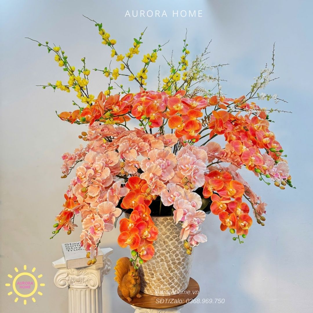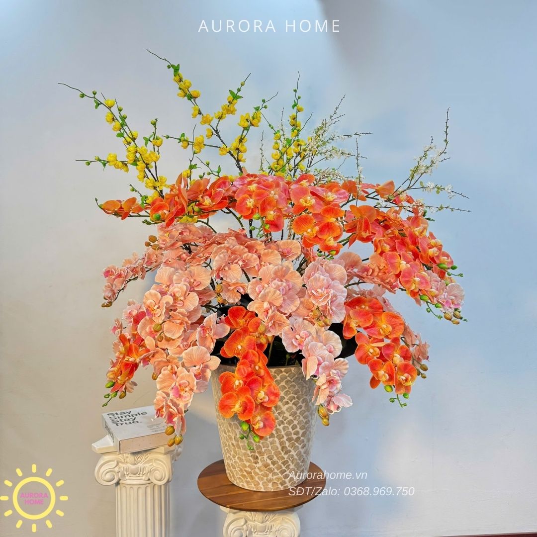 Chậu hoa lan hồ điệp giả cao cấp Rạng Minh Phú Quý