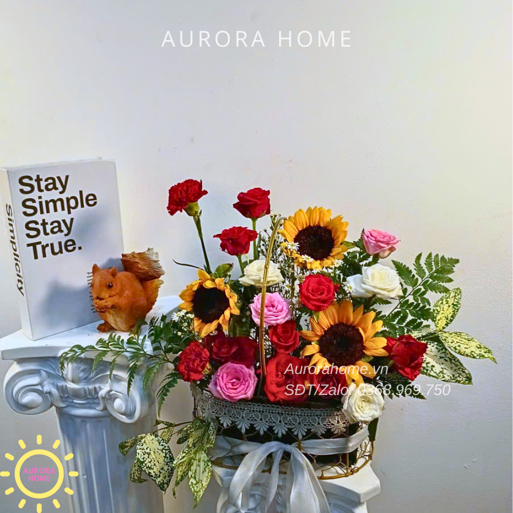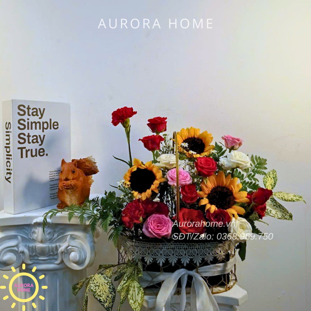 Nếu sản phẩm bạn chọn loại hoa đã hết mùa, Aurora sẽ cần sử dụng loại hoa thay thế để có thể mang đến cho bạn giỏ hoa đẹp nhất.