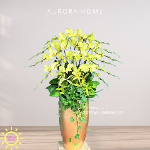 Chậu hoa lan tươi mang vẻ đẹp thanh lịch, sang trọng, là lựa chọn lý tưởng để trang trí không gian sống, văn phòng hoặc làm quà tặng ý nghĩa trong các dịp quan trọng. Mỗi cành lan được tuyển chọn kỹ lưỡng, hoa nở đều, màu sắc hài hòa, tượng trưng cho tài lộc, may mắn và sự thịnh vượng.
