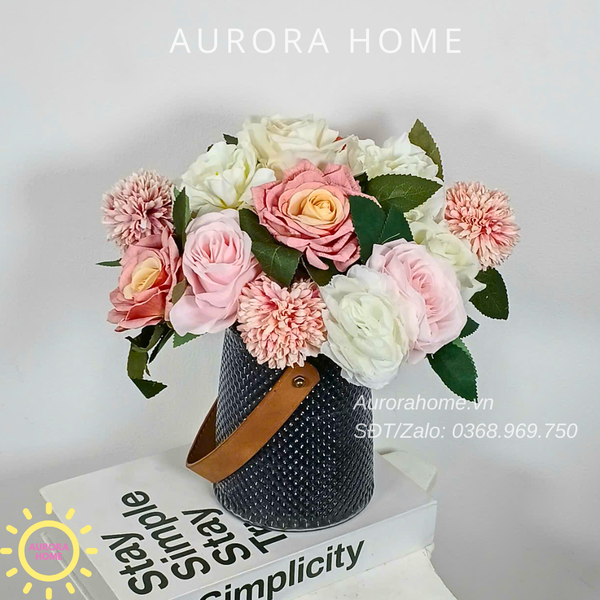 Aurora Home - Sản phẩm trang trí nội thất hiện đại chuyên cung cấp các sản phẩm bình hoa lụa, bình hoa vải, bình hoa giả cắm sẵn để bàn. Các sản phẩm tại Aurora Home đều được thiết kế riêng, cho ra những tông màu phù hợp với từng loại không gian khác nhau. Những bình bình bình hoa không chỉ đẹp từ vẻ đẹp tổng quan, mà yếu tố về chất liệu cũng là yếu tố hàng đầu được Aurora Home sử dụng trong công việc thiết kế và cắm sẵn hoa.