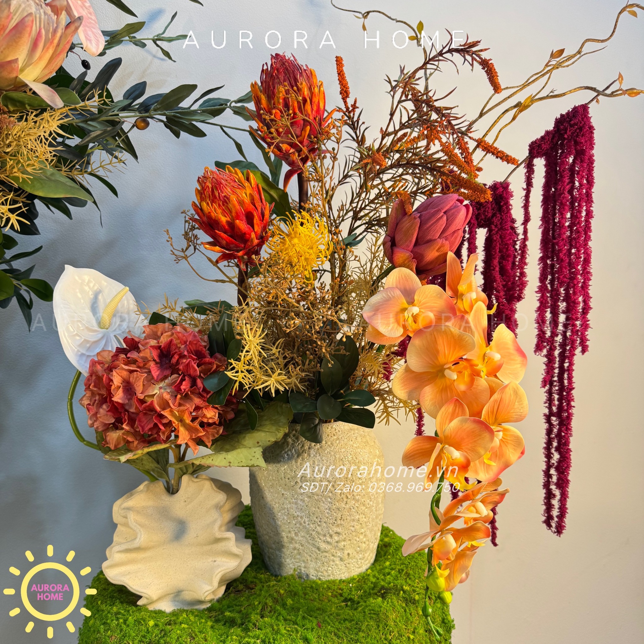 Aurora Home - Sản phẩm trang trí nội thất hiện đại chuyên cung cấp các sản phẩm bình hoa lụa, bình hoa vải, bình hoa giả cắm sẵn để bàn. Các sản phẩm tại Aurora Home đều được thiết kế riêng, cho ra những tông màu phù hợp với từng loại không gian khác nhau. Những bình bình bình hoa không chỉ đẹp từ vẻ đẹp tổng quan, mà yếu tố về chất liệu cũng là yếu tố hàng đầu được Aurora Home sử dụng trong công việc thiết kế và cắm sẵn hoa.