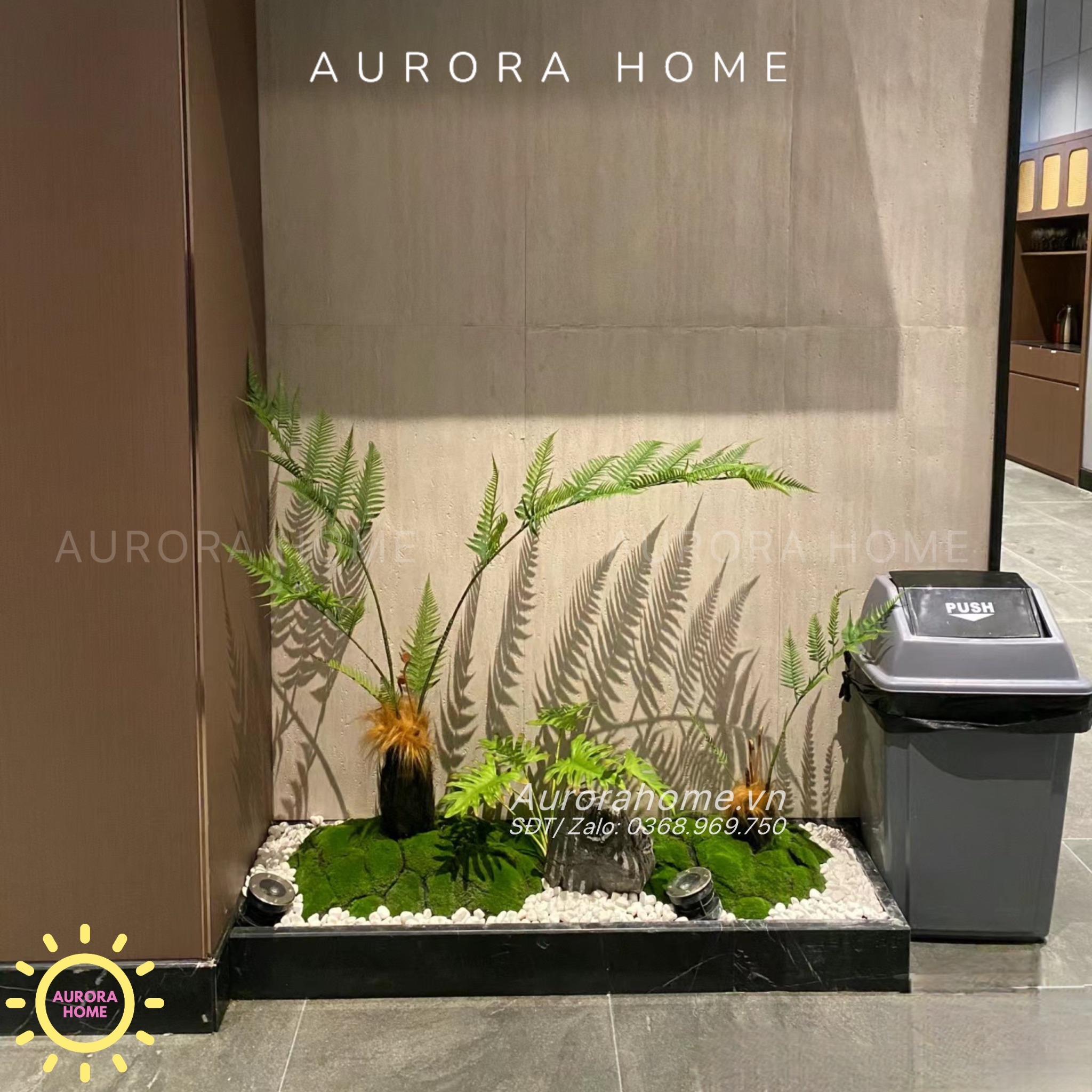 Aurora Home chuyên cung cấp các mẫu bồn cây cảnh giả, tiểu cảnh trang trí phòng, trang trí nhà cho các dự án nhà phố, căn hộ cao cấp như Vinhomes, Novaland,... Với phương châm mang đến những sản phẩm có giá trị cao và chất lượng đến cho khách hàng. Aurora Home đặt cao tính thẩm mỹ, thời thượng, độc đáo và kinh phí hợp lý cho khách hàng khi thi công tiểu cảnh cây và hoa giả.