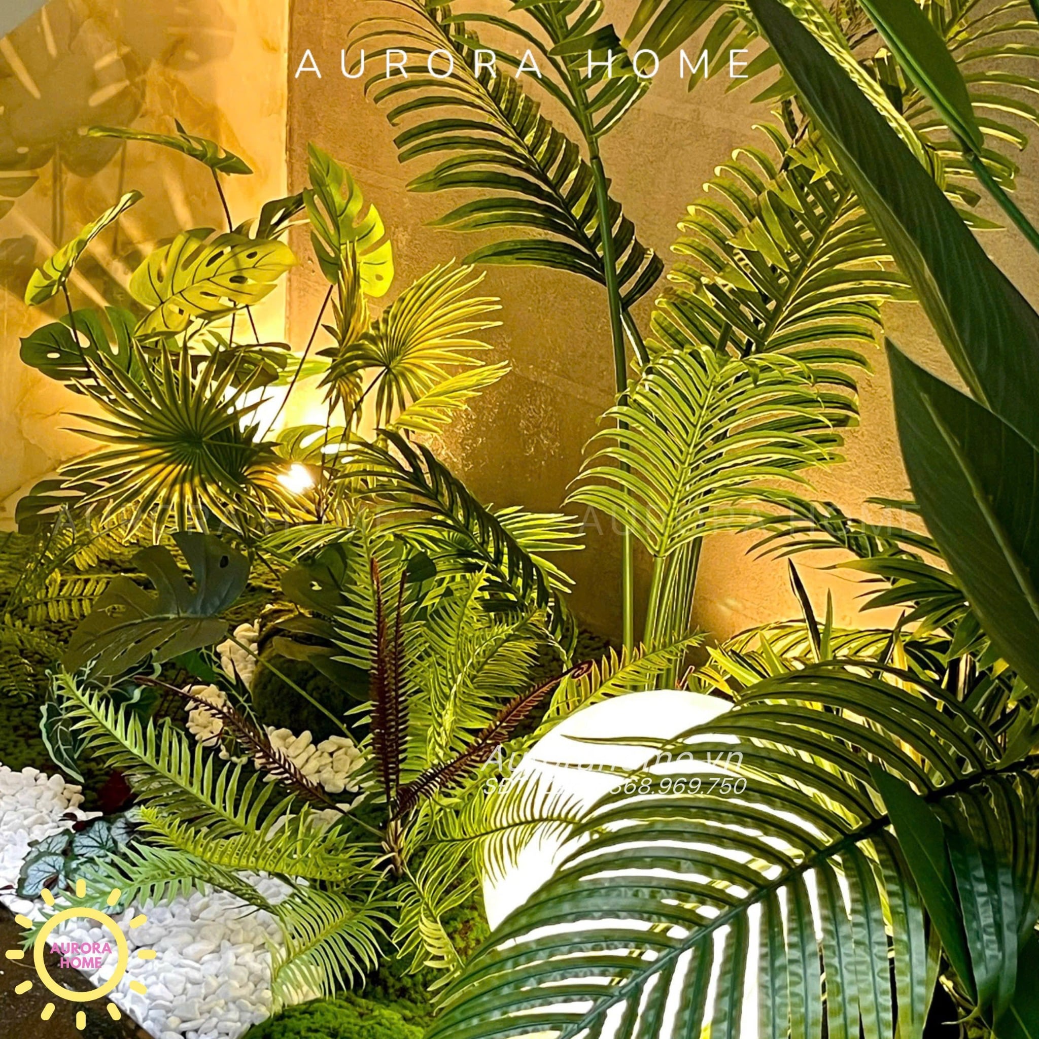 Aurora Home chuyên cung cấp các mẫu bồn cây cảnh giả, tiểu cảnh trang trí phòng, trang trí nhà cho các dự án nhà phố, căn hộ cao cấp như Vinhomes, Novaland,... Với phương châm mang đến những sản phẩm có giá trị cao và chất lượng đến cho khách hàng. Aurora Home đặt cao tính thẩm mỹ, thời thượng, độc đáo và kinh phí hợp lý cho khách hàng khi thi công tiểu cảnh cây và hoa giả.
