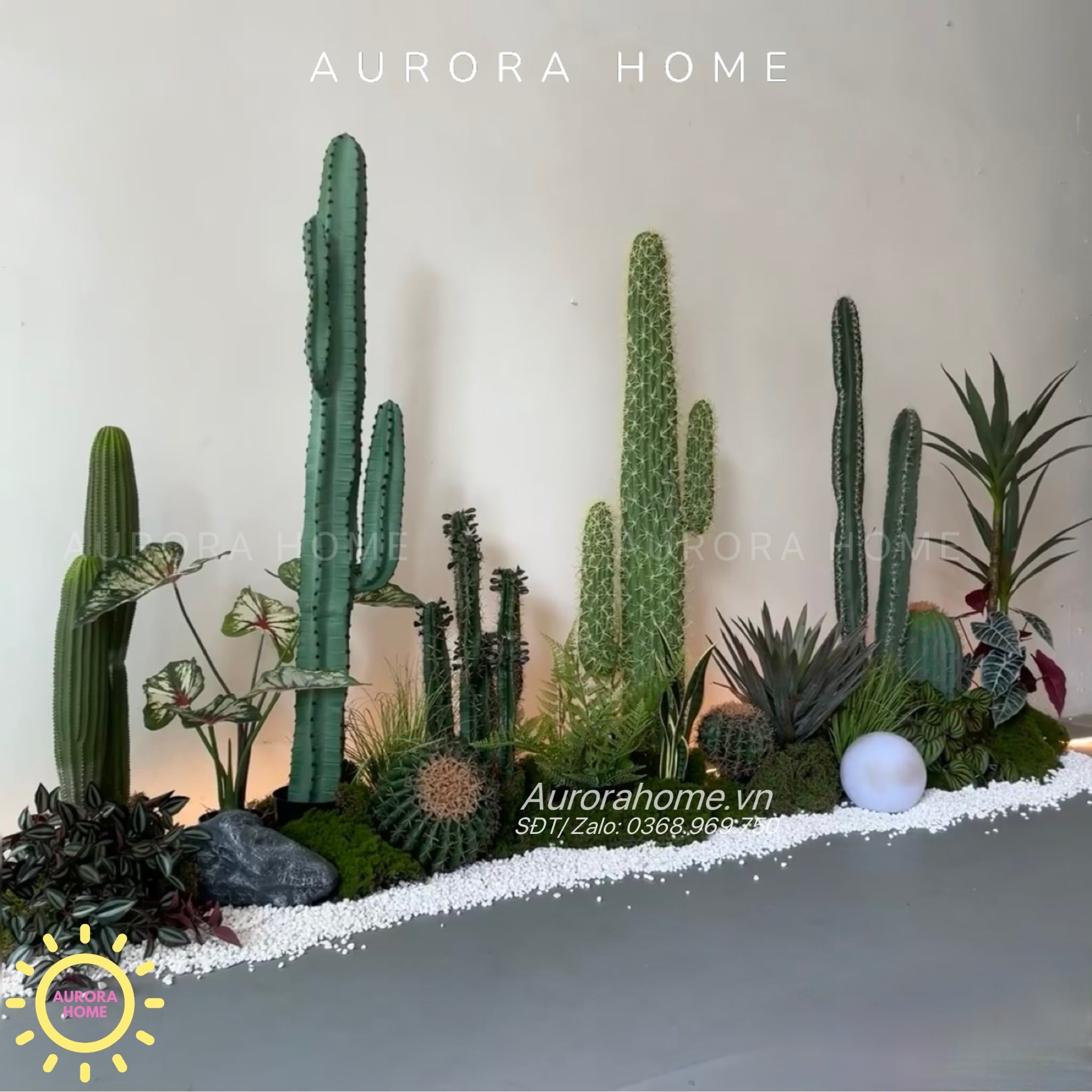 Aurora Home chuyên cung cấp các mẫu bồn cây cảnh giả, tiểu cảnh trang trí phòng, trang trí nhà cho các dự án nhà phố, căn hộ cao cấp như Vinhomes, Novaland,... Với phương châm mang đến những sản phẩm có giá trị cao và chất lượng đến cho khách hàng. Aurora Home đặt cao tính thẩm mỹ, thời thượng, độc đáo và kinh phí hợp lý cho khách hàng khi thi công tiểu cảnh cây và hoa giả.