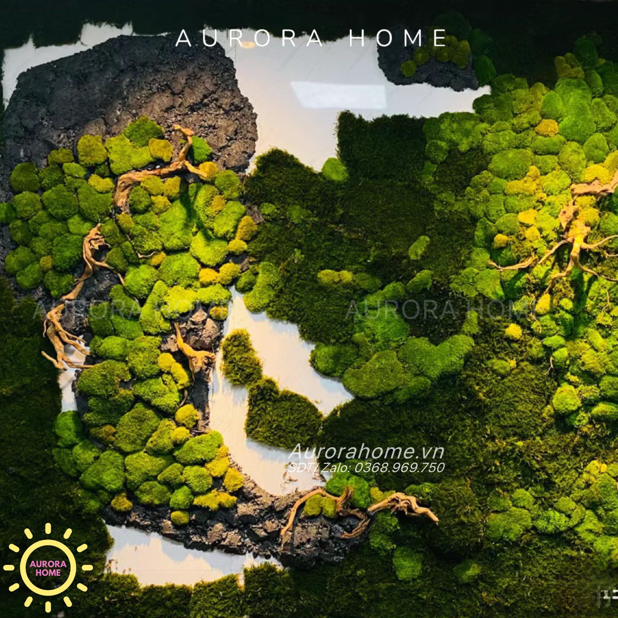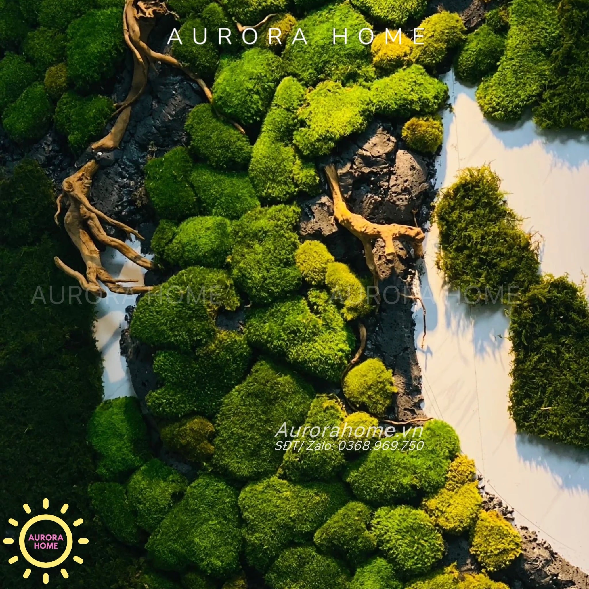 Tiểu cảnh vách tường rêu decor trang trí văn phòng nghệ thuật