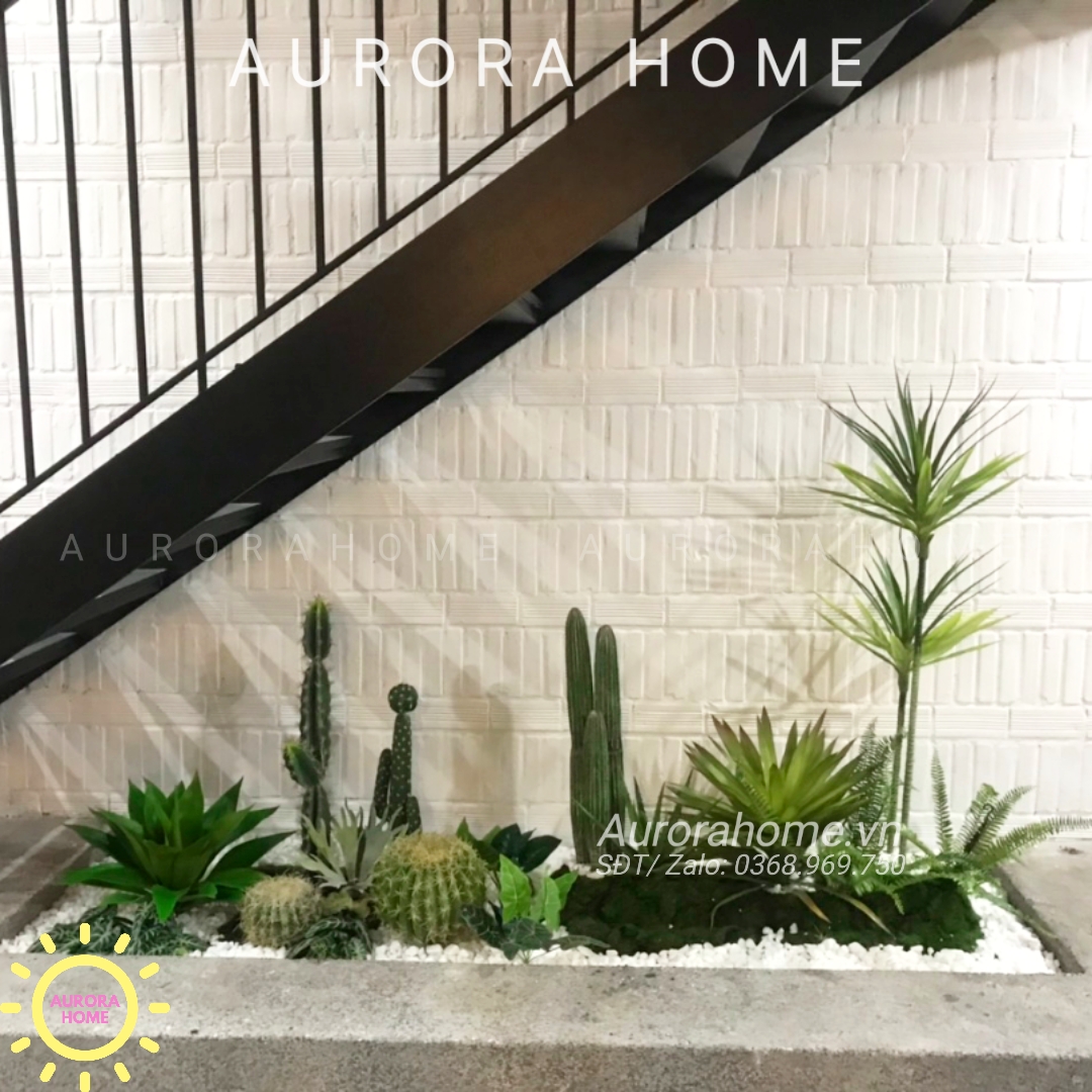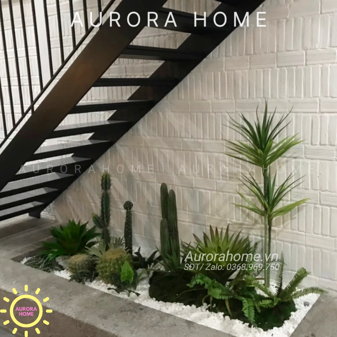 Tiểu cảnh xương rồng giả trang trí góc cầu thang nhà Aurora Home có gì đặc biệt?